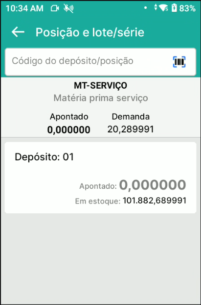 Quando ativo o parâmetro Apontar quantidade ao ler código de barras, no aplicativo, em todos os menus, será realizado o preenchimento da quantidade através da leitura do código do item ou código de barras.