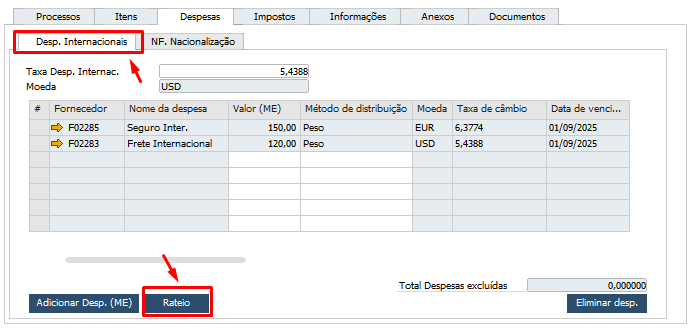 Na atualização mais recente do BR One versão 340, foi ajustado a mensagem de erro no momento de realizar o “Rateio” das “Desp. Internacionais”, assim facilitando o entendimento do usuário no dia a dia.