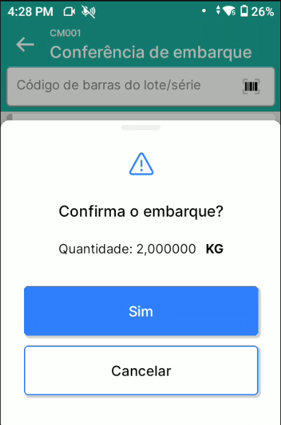 Na tela Conferência de Embarque, agora também é exibida a unidade de medida junto a quantidade do item selecionado.